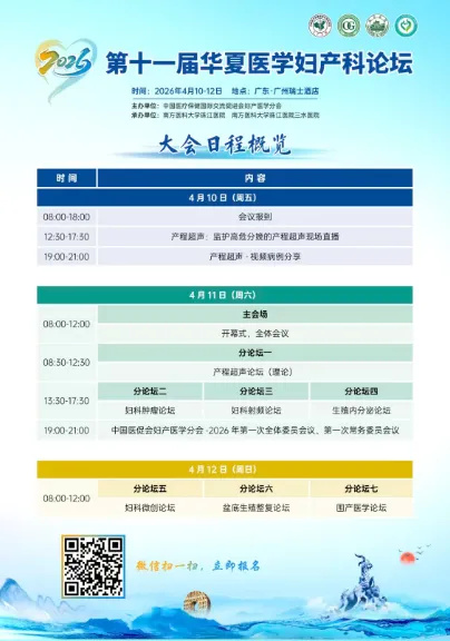 2026年4月10日-12日,由中国医疗保健国际交流促进会妇产医学分会主办,南方医科大学珠江医院、南方医科大学珠江医院三水医院承办的第十一届华夏医学妇产科论坛,将在广州瑞士酒店盛大启幕!